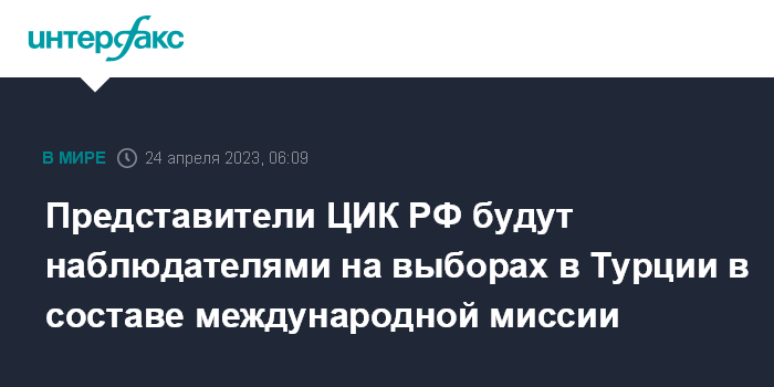 Москва. 24 апреля. INTERFAX.RU - Представители ЦИК могут поехать в составе международной миссии на выборы в Турцию, сообщила журналистам председатель ЦИК РФ Элла Памфилова в понедельник в Хабаровске.