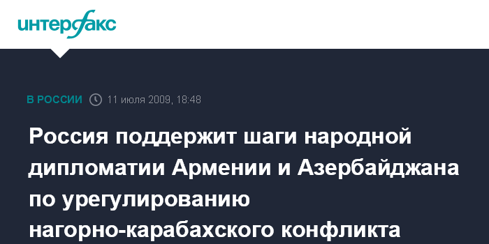Россия поддержит шаги народной дипломатии Армении и Азербайджана по урегулированию нагорно-карабахского конфликта