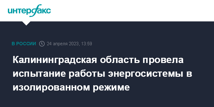 Москва. 24 апреля. INTERFAX.RU - Энергосистема Калининградской области штатно отработала очередные испытания работы в изолированном режиме, сообщила пресс-служба губернатора региона Антона Алиханова.