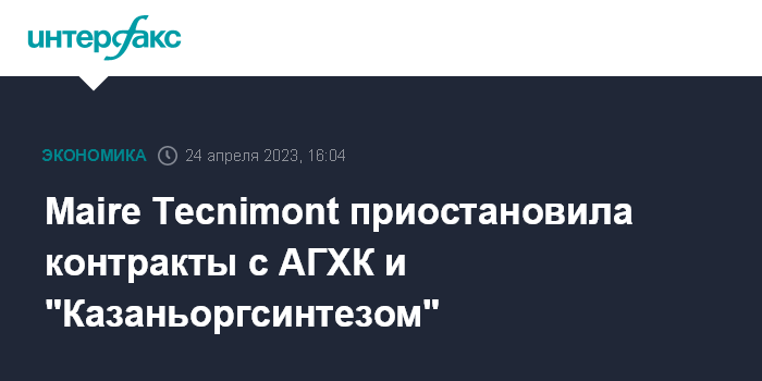 Maire Tecnimont приостановила контракты с АГХК и "Казаньоргсинтезом"