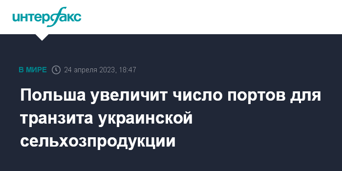 Обнародованное на прошлой неделе постановление властей Польши о запрете импорта сельхозпродукции с Украины одновременно разрешает ее транзит в порты, в частности, в четыре польских государственных порта - Гданьск, Гдыню, Щецин и Свиноуйсьце.