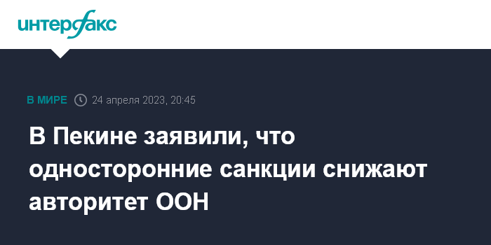 В Пекине заявили, что односторонние санкции снижают авторитет ООН
