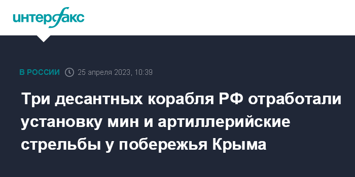 Три десантных корабля РФ отработали установку мин и артиллерийские стрельбы у побережья Крыма