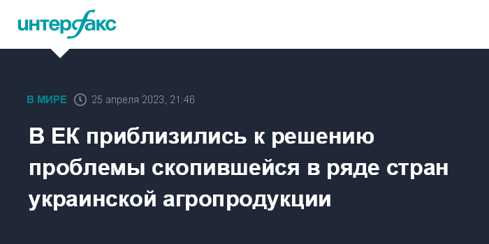 Москва. 25 апреля. INTERFAX.RU - Страны Евросоюза близки к тому, чтобы найти общее решение проблемы скопившейся агропродукции с Украины и обрушения цен в некоторых странах на востоке Европы, заявил член Европейской комиссии по сельскому хозяйству Януш Войцеховский после переговоров министров сельского хозяйства стран ЕС.