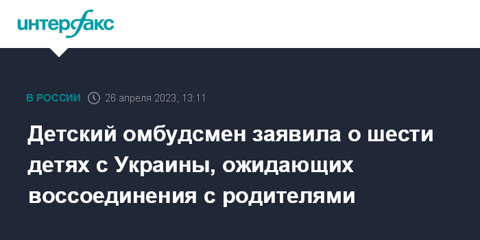 Москва. 26 апреля. INTERFAX.RU - В Крыму остаются шесть украинских детей, вывезенных из зоны проведения СВО, которые ждут воссоединения со своими семьями, сообщила в среду уполномоченный при президенте по правам ребенка Мария Львова-Белова.