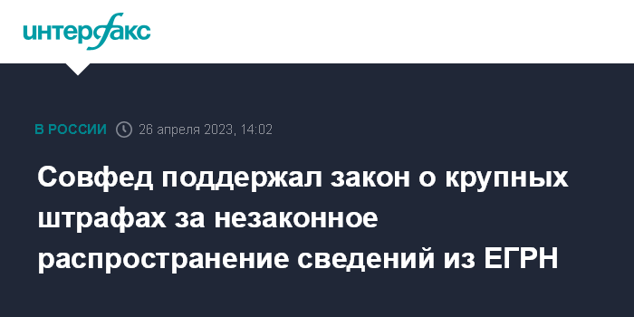 Совфед поддержал закон о крупных штрафах за незаконное распространение сведений из ЕГРН
