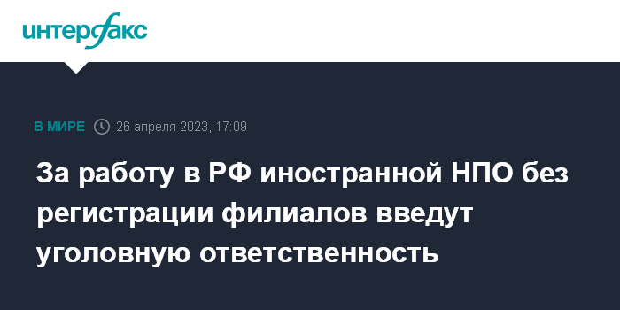 За работу в РФ иностранной НПО без регистрации филиалов введут уголовную ответственность