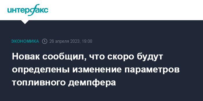 Новак сообщил, что скоро будут определены изменение параметров топливного демпфера
