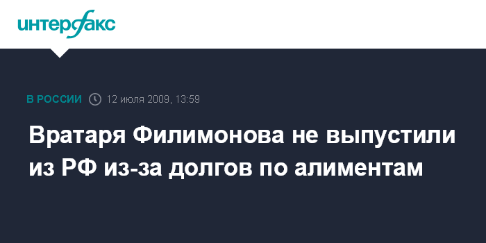 Москва. 12 июля. INTERFAX.RU - Судебные приставы в воскресенье не выпустили из РФ в Узбекистан бывшего вратаря сборной России по футболу и московского "Спартака" Александра Филимонова, сообщает Первый канал.