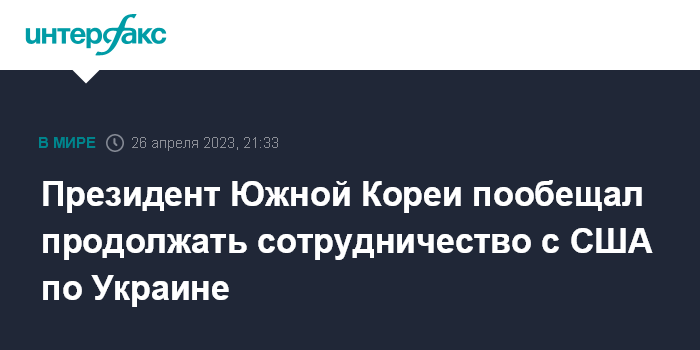 Москва. 26 апреля. INTERFAX.RU - Президент Южной Кореи Юн Сок Ель в среду заявил, что по итогам переговоров со своим американским коллегой Джо Байденом они договорились продолжать оказывать помощь Украине.