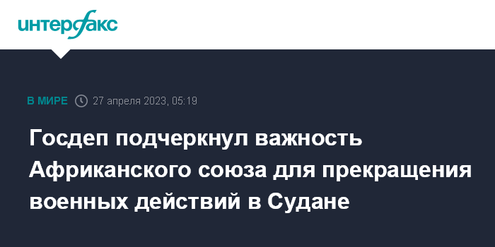 Госдеп подчеркнул важность Африканского союза для прекращения военных действий в Судане