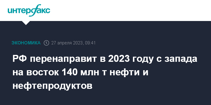 "Поэтому 40 млн т ушло в 2022 году. В этом году уйдет 140 млн т нефти и нефтепродуктов на восток. И всего останется порядка 80-90 млн т в западном направлении", - сказал он.