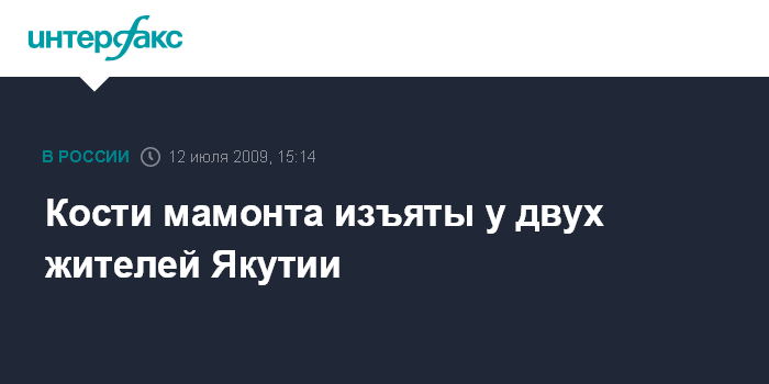 Хабаровск. 12 июля. INTERFAX.RU - Около 50 кг костей мамонта, ружье и боеприпасы к нему изъяты у двух жителей Якутии при досмотре пограничниками Северо-Восточного погрануправления береговой охраны.