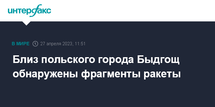 Москва. 27 апреля. INTERFAX.RU - Военная прокуратура Польши расследует ситуацию с обнаружением фрагментов снаряда близ города Быдгощ (Куявско-Поморское воеводство), сообщает в четверг польская пресса.
