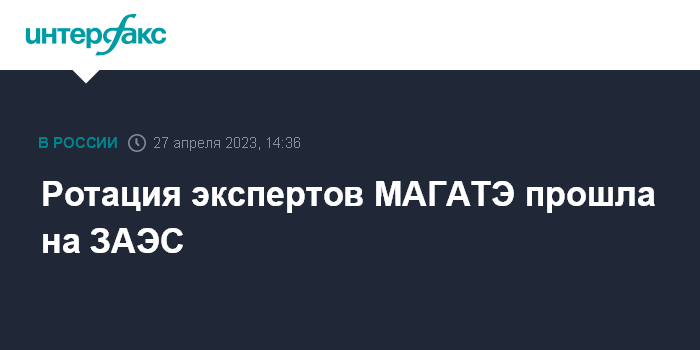 Москва. 27 апреля. INTERFAX.RU - Новая группа специалистов Международного агентства по атомной энергии (МАГАТЭ) сменила в четверг своих коллег на Запорожской АЭС (ЗАЭС) в Энергодаре, сообщил "Интерфаксу" советник главы концерна "Росэнергоатом" Ренат Карчаа.