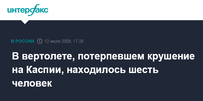 Баку. 12 июля. INTERFAX.RU - Спасены все трое членов экипажа, а также один из трех азербайджанских нефтяников, находившихся в транспортном вертолете Ми-8, который в воскресенье потерпел крушение над Каспием недалеко от Баку.