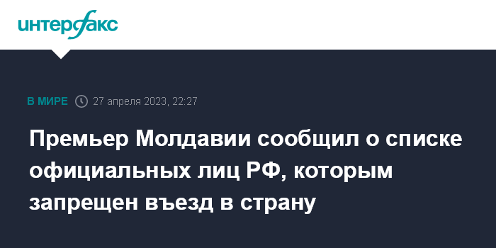 Москва. 27 апреля. INTERFAX.RU - Премьер-министр Молдавии Дорин Речан заявил, что в республике существует список официальных лиц РФ, которым запрещен въезд в страну, отметив, что в этот список входит и российский президент Владимир Путин.