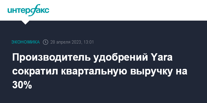 Производитель удобрений Yara сократил квартальную выручку на 30%