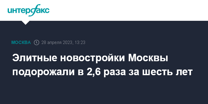 Элитные новостройки Москвы подорожали в 2,6 раза за шесть лет