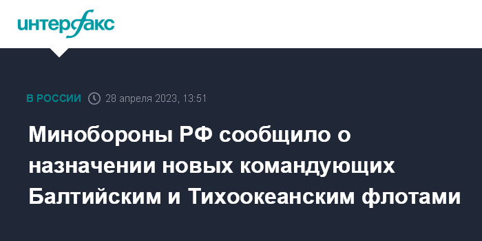 Минобороны РФ сообщило о назначении новых командующих Балтийским и Тихоокеанским флотами