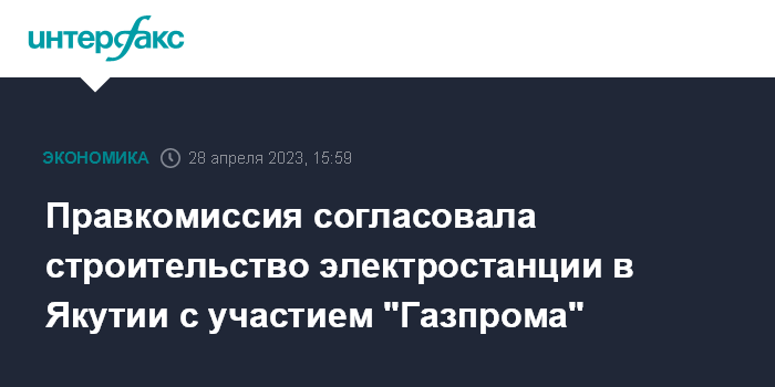 Правкомиссия согласовала строительство электростанции в Якутии с участием "Газпрома"