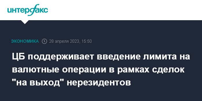 ЦБ поддерживает введение лимита на валютные операции в рамках сделок "на выход" нерезидентов