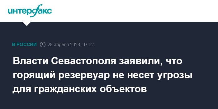 Власти Севастополя заявили, что горящий резервуар не несет угрозы для гражданских объектов