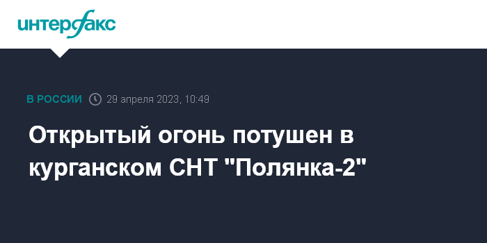 Москва. 29 апреля. INTERFAX.RU - Пожарные потушили открытое пламя в СНТ "Полянка-2" в Курганской области, сообщает пресс-служба ГУ МЧС по региону.