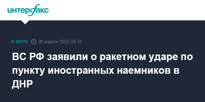 ВС РФ заявили о ракетном ударе по пункту иностранных наемников в ДНР