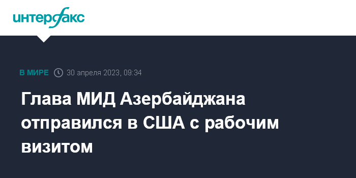 Москва. 30 апреля. INTERFAX.RU - Министр иностранных дел Азербайджана Джейхун Байрамов по приглашению госсекретаря США Энтони Блинкена отбыл с рабочим визитом в Соединенные Штаты Америки, сообщает МИД Азербайджана.