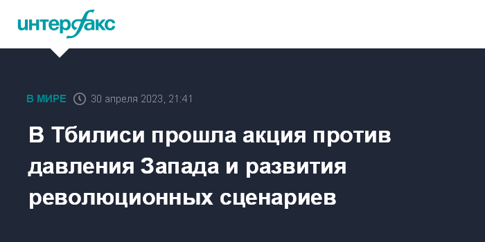 Москва. 30 апреля. INTERFAX.RU - В Тбилиси в воскресенье прошла многотысячная акция за мир и стабильность, против развития в Грузии революционных сценариев и давления Запада.
