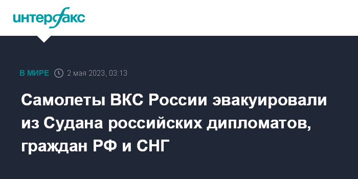 Самолеты ВКС России эвакуировали из Судана российских дипломатов, граждан РФ и СНГ