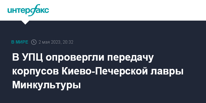 Москва. 2 мая. INTERFAX.RU - В Украинской православной церкви дезавуировали сообщения министерства культуры о якобы произошедшей передаче корпусов Киево-Печерской лавры в ведение государства.