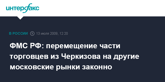 ФМС РФ: перемещение части торговцев из Черкизова на другие московские рынки законно