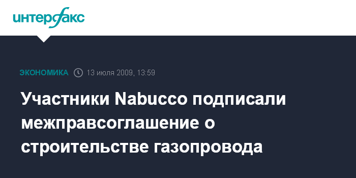 Участники Nabucco подписали межправсоглашение о строительстве газопровода