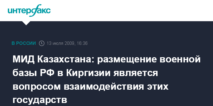 МИД Казахстана: размещение военной базы РФ в Киргизии является вопросом взаимодействия этих государств