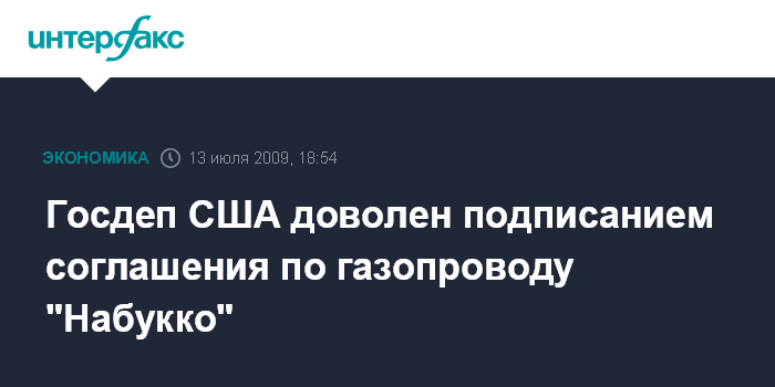Вашингтон. 13 июля. INTERFAX.RU - Власти США положительно оценивают подписание в Анкаре межправительственного соглашения по проекту газопровода "Набукко".