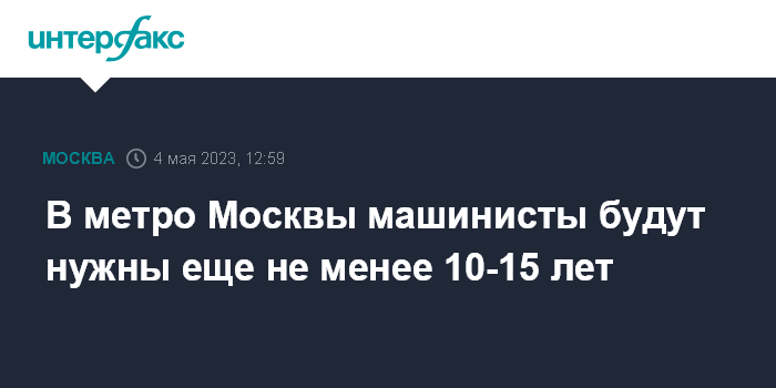Москва. 4 мая. INTERFAX.RU - Работа машинистов московского метро останется актуальной в ближайшие 10-15 лет, у властей нет самоцели перейти на беспилотное управление поездами, на данный момент нет технологических решений для такого перехода, сообщил CNews заммэра столицы по вопросам транспорта Максим Ликсутов.