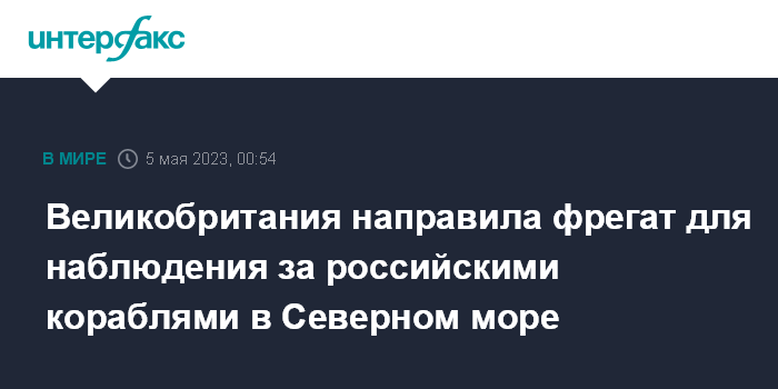 Москва. 5 мая. INTERFAX.RU - Командование ВМС Великобритании направило оснащенный противокорабельными ракетами фрегат для наблюдения за кораблями ВМФ России в Северном море, сообщает газета The Sun со ссылкой на источник в британском минобороны.