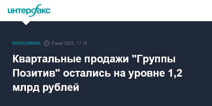 Москва. 5 мая. INTERFAX.RU - В I квартале 2023 года объем продаж ("отгрузки") IT-компании "Группа Позитив" (головная компания группы Positive Technologies, занимающейся разработкой решений в области информационной безопасности) сохранился на уровне аналогичного периода 2022 года и составил 1,2 млрд рублей, сообщила компания.