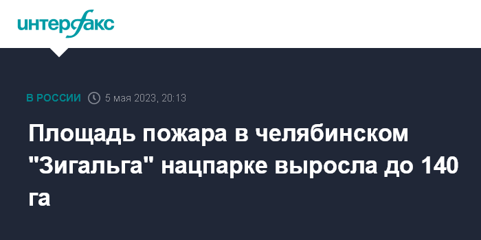 Москва. 5 мая. INTERFAX.RU - В Челябинской области площадь пожара в национальном парке "Зигальга" из-за сильного ветра увеличилась до 140 гектаров, на борьбу с огнем были брошены дополнительные силы и техника, сообщила пресс-служба администрации парка.