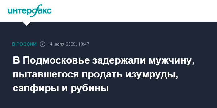 Москва. 14 июля. INTERFAX.RU - Сотрудники Главного управления МВД России по Центральному федеральному округу задержали в подмосковном Подольске мужчину, который пытался незаконно продать изумруды, сапфиры и рубины, сообщили "Интерфаксу" в пресс-службе ГУ МВД России по ЦФО во вторник. При задержании у задержанного было обнаружено 48 камней общим весом 40 карат, которые он пытался сбыть за один миллион рублей.