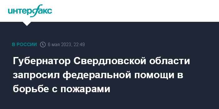Москва. 6 мая. INTERFAX.RU - Глава Свердловской области Евгений Куйвашев заявил, что ситуация с пожарами в регионе оценивается как критическая, запрошена федеральная помощь.