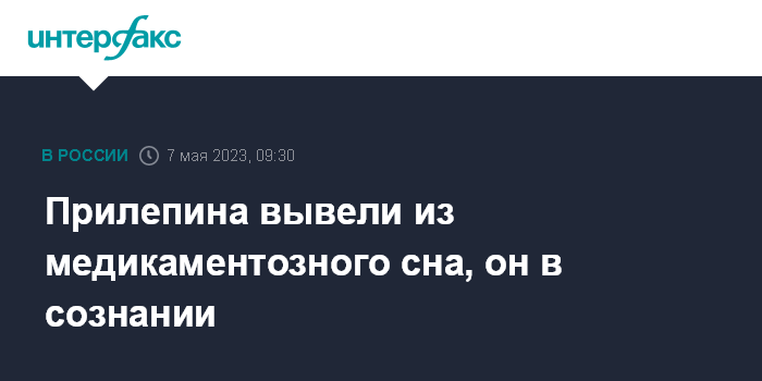 Глава региона написал в своем телеграм-канале, что Прилепин выведен из медикаментозного сна, "в сознании, по словам врачей - его состояние стабильное, настроение бодрое".