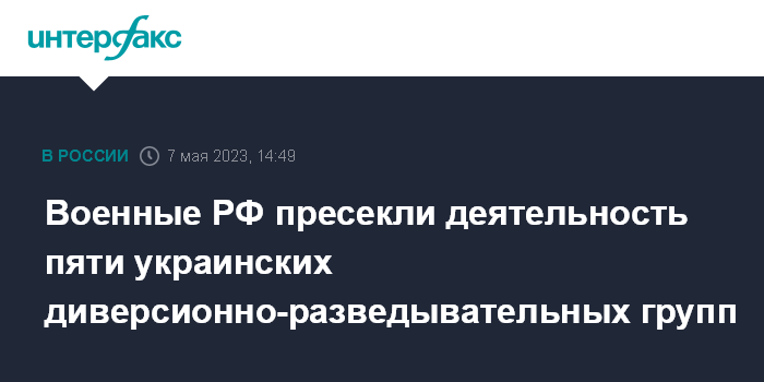 Москва. 7 мая. INTERFAX.RU - Российские военные пресекли деятельность пяти украинских диверсионно-разведывательных групп (ДРГ) в ЛНР, Харьковской и Запорожской областях, заявил официальный представитель Минобороны РФ Игорь Конашенков.