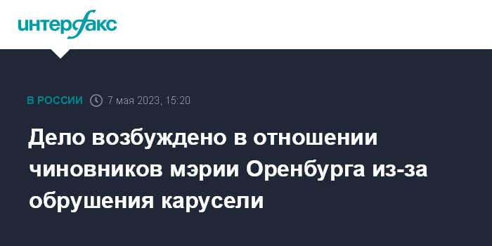 Дело возбуждено в отношении чиновников мэрии Оренбурга из-за обрушения карусели
