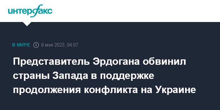 Москва. 8 мая. INTERFAX.RU - Западные страны заинтересованы в продолжении боевых действий на Украине и не стремятся к урегулированию кризиса, заявил официальный представитель президента Турции Ибрагим Калын.