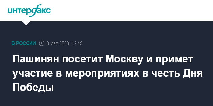 Пашинян посетит Москву и примет участие в мероприятиях в честь Дня Победы