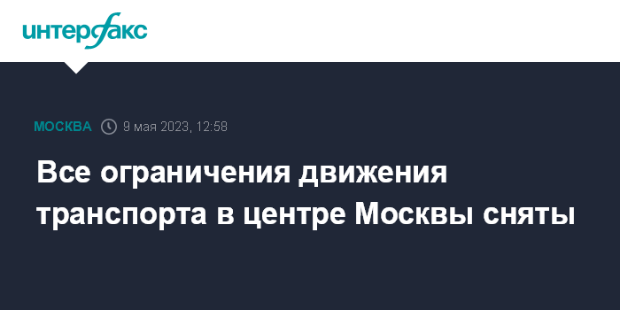 Москва. 9 мая. INTERFAX.RU - В центре столицы сняты все ограничения движения, сообщается в телеграм-канале в департаменте транспорта Москвы.