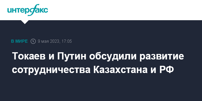 Москва. 9 мая. INTERFAX.RU - Президенты Казахстана и России Касым-Жомарт Токаев и Владимир Путин на встрече в Москве провели обстоятельный разговор, в ходе которого обсудили актуальные вопросы сотрудничества двух стран, сообщил журналистам во вторник пресс-секретарь казахстанского лидера Руслан Желдибай.